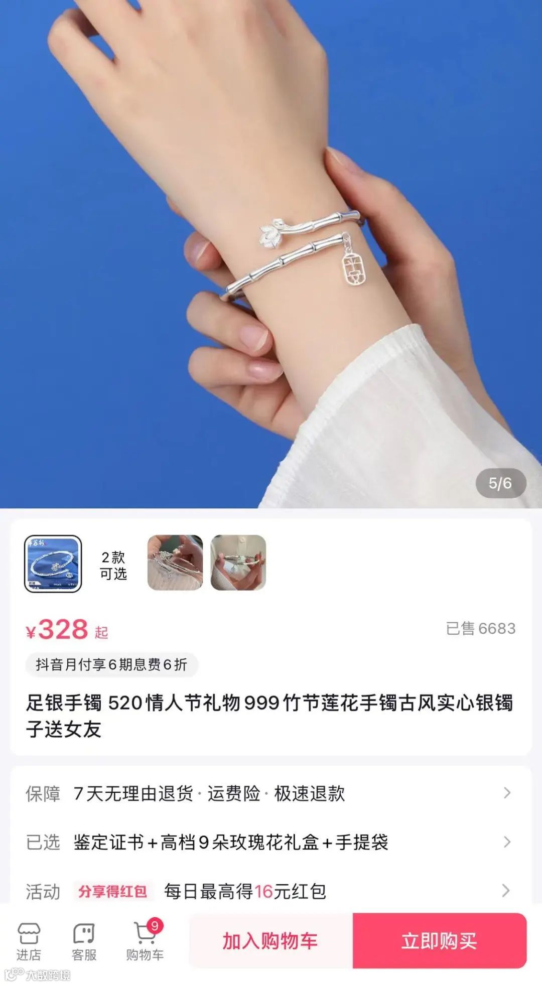 在很多人印象中女生的穿戴的首饰价格肯定都不便宜,在别的平台这款竹节手镯特惠价也要328元,已经卖出了6000+件。