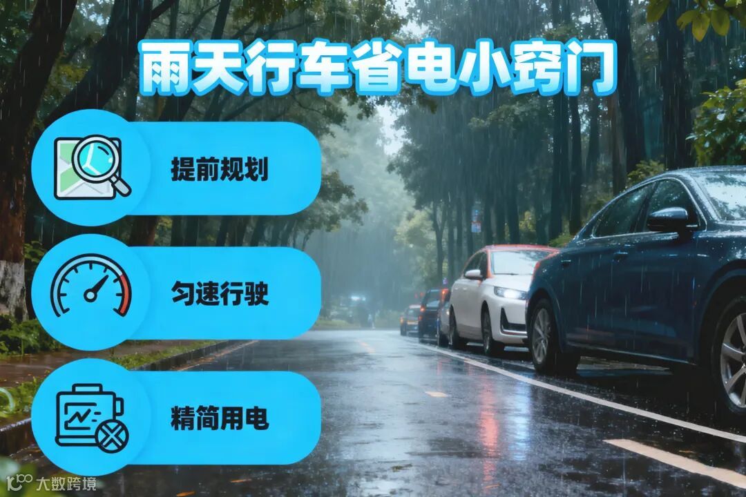 4、🚗驾驶习惯改变:雨天路滑、能见度低,频繁刹车起步不仅电耗比匀速行驶高,拥堵时能量回收效率还会下降,续航又少一截。