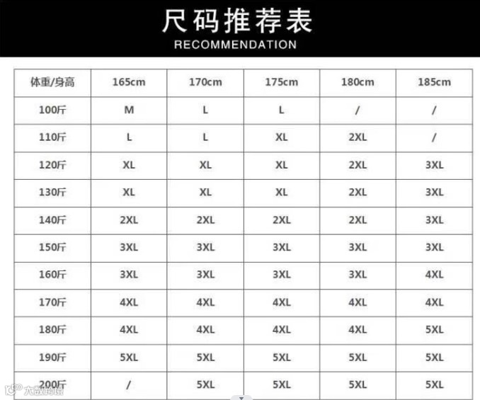 80~200斤都可选到合适的码数