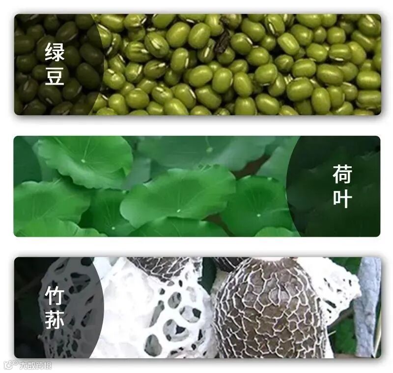 融合了药食同源的绿豆、竹荪、荷叶等原材