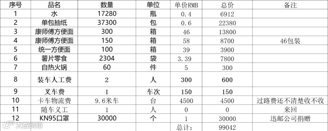 7月22日中午,彭东同学团队联系的车辆抵达仓库,装运食物和日用物品,全程和大家互动,公开、高效的行事获得了同学们一致好评。生活委员张志素公布:班级全体一共筹集善款50000元,9米6的厢货车装载40000包纸巾、17280瓶纯净水和550箱方便面等生活物资。