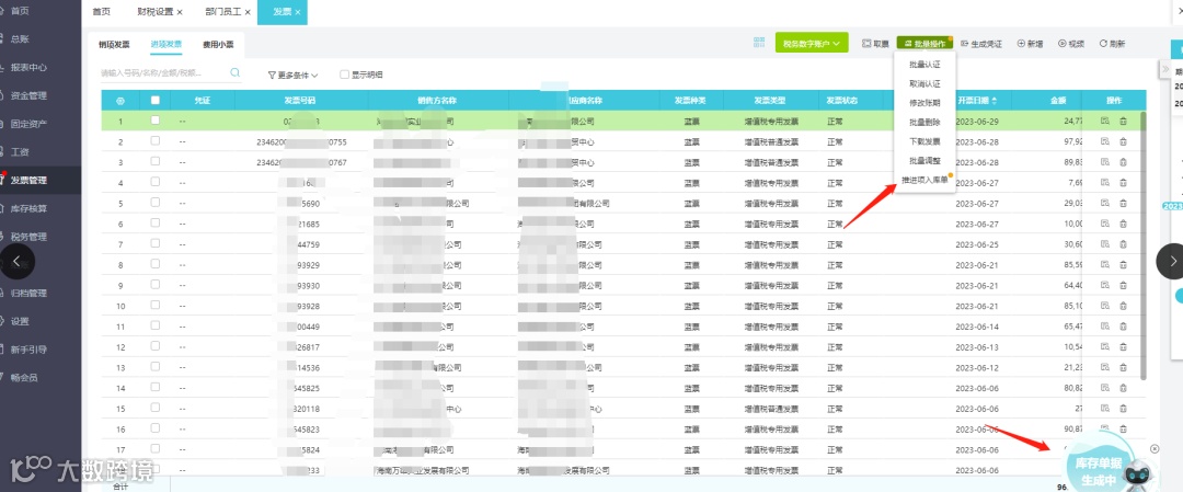 发票推出入库单数据太多会后台执行,执行完成会返回任务完成提示: