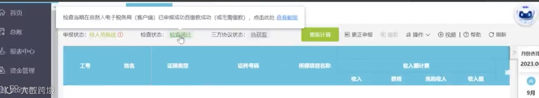 非本通道申报的客户也可以手工发起“报税检查”,更新最新申报与缴款状态。