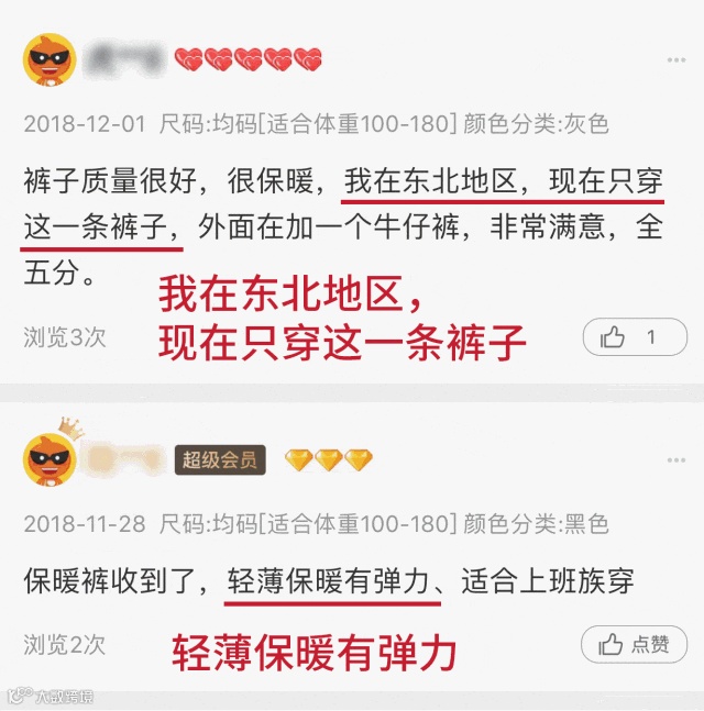 ▲左为其他秋裤,右为火山绒秋裤