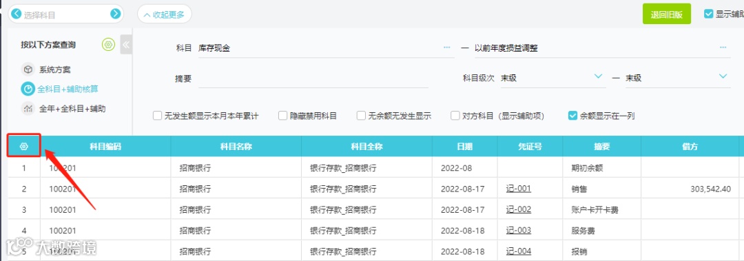 您可以:在【总账】-【明细账】中点击“小齿轮”按钮;