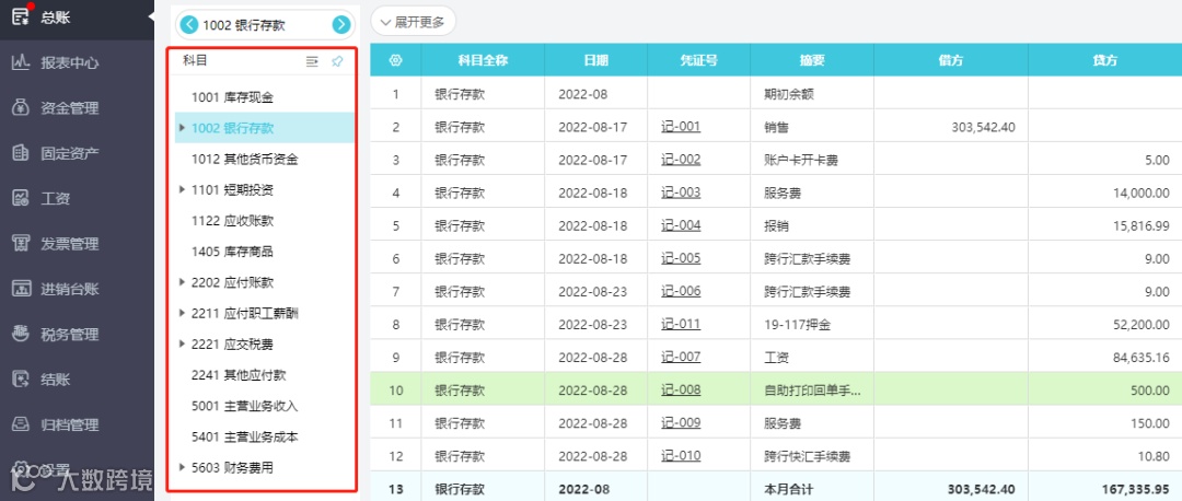通过点击菜单,展开或收起明细科目,非常方便。