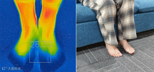 分别穿上普通保暖袜和美利奴羊毛袜......