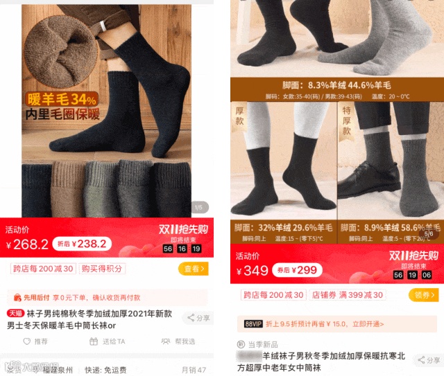 羊毛含量30%-40%的,基本都卖200+,真贵!