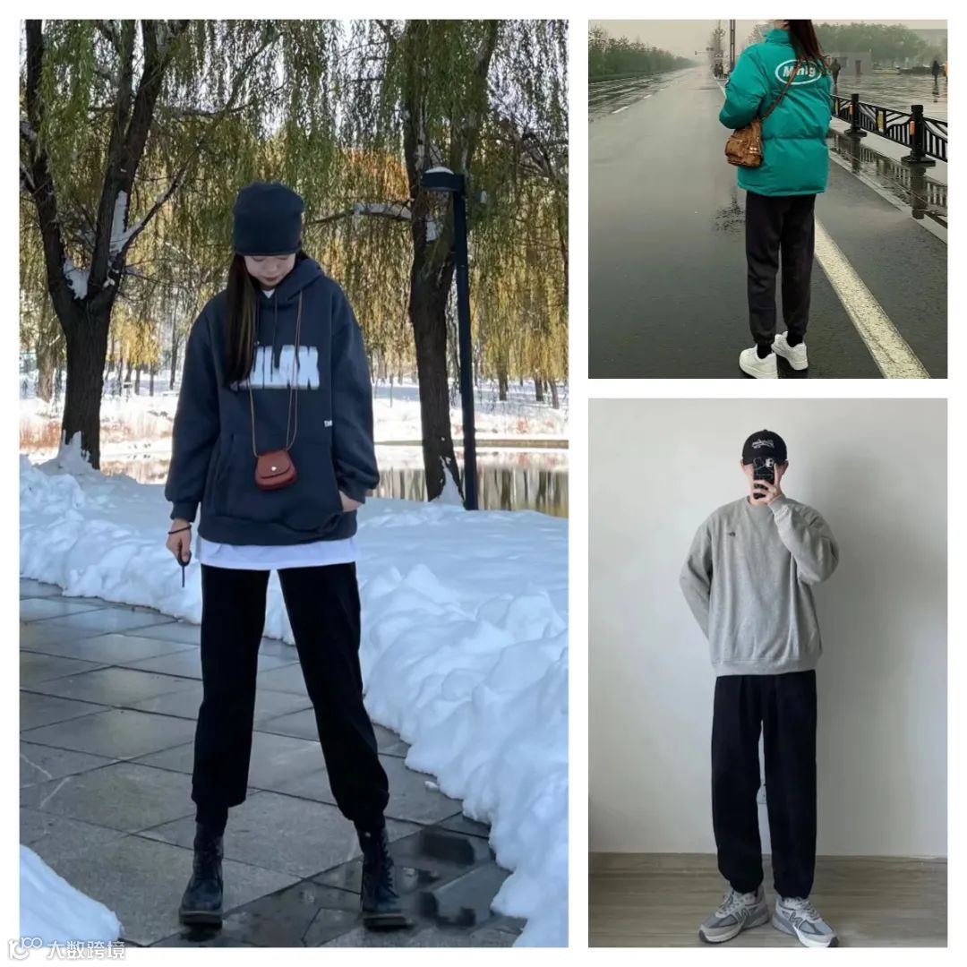 搭配上更是简单,深色裤子是最百搭的了,不管是棉衣还是卫衣,冬天的上衣都能搭~