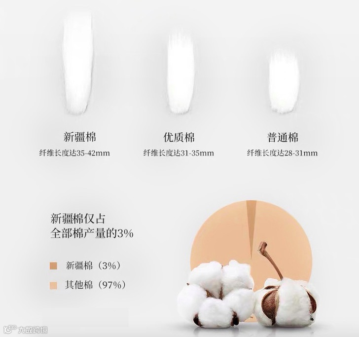 采用的棉花属于长绒棉,产自新疆
