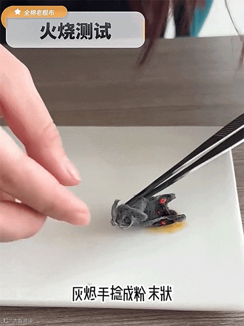 真正的纯棉材质燃烧无黑烟,不结团
