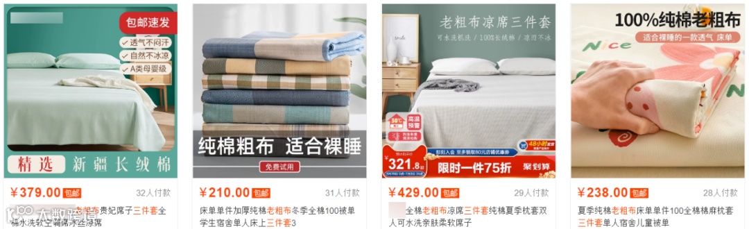 好一点的老粗布三件套,售价都要好几百