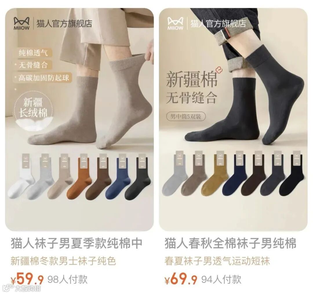 之前我们卖过猫人家的船袜和短筒运动袜,销量是真的火爆。