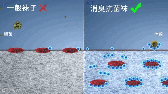 相当于给袜子包了一层“隐形护甲”,能在不改变织物属性的前提下,达到抑菌、消臭的效果。