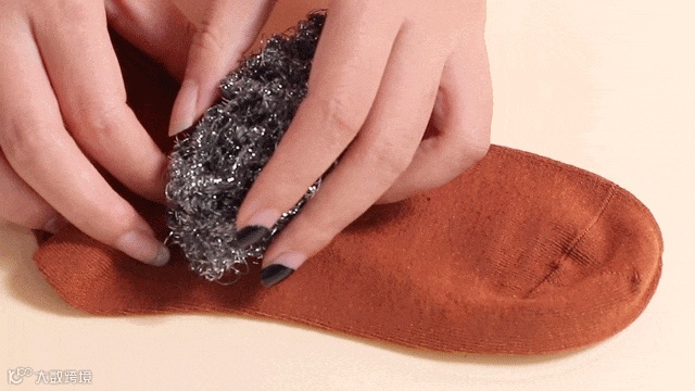 用尖锐的钢丝梳子使劲摩擦袜子,依旧如新的一样,可见长绒棉的强韧~