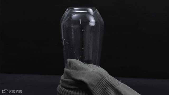 把袜子盖在一杯烫水上,上面的空杯马上就充满水蒸气,透气性优秀~