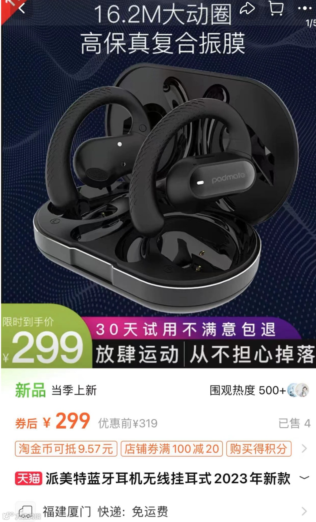 推荐理由:震撼音效,稳固挂耳!这款派美特气传导蓝牙耳机让你享受大牌音质,1/5价格狂甩不掉!无论是跑步、骑行还是徒步旅行,我都能舒适地享受音乐!