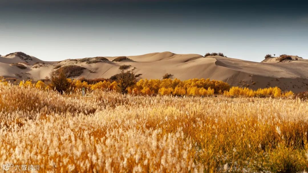 像极了镶了两道金边的银丝带蜿蜒飘舞,与祁连山遥相辉映,绵延上百公里,宛如金黄的大海。