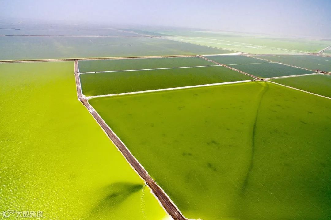 它和其他盐湖不同的是,它不是一块完整的湖泊而是由大大小小零散的湖泊组成的,它每一块湖泊都是不同的绿色。