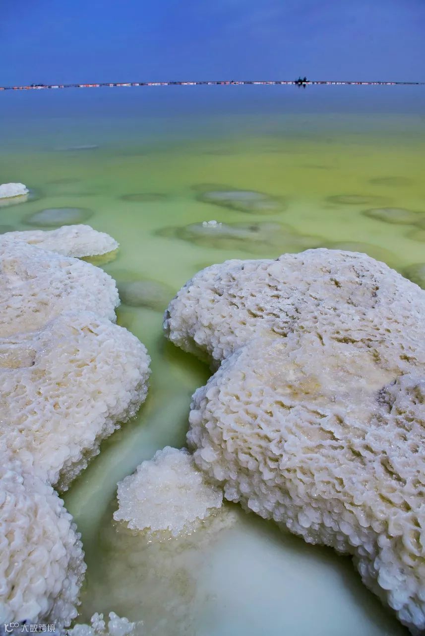 在察尔汗盐湖一切绿色植物均难以生长,但却孕育了晶莹如玉、变化万千的神奇盐花。