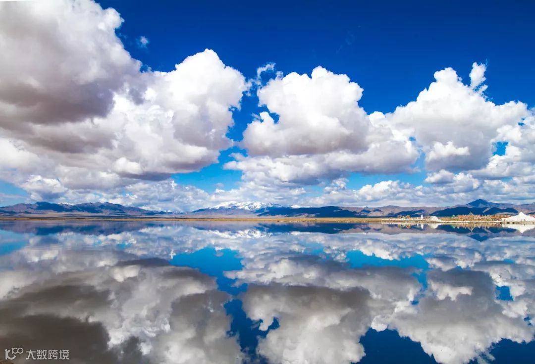 茶卡盐湖面积空旷、地势平坦,湖面极具有强烈的反射能力,如同一面为天空梳洗打扮而准备的镜子,将天完整的倒映在湖面之上。