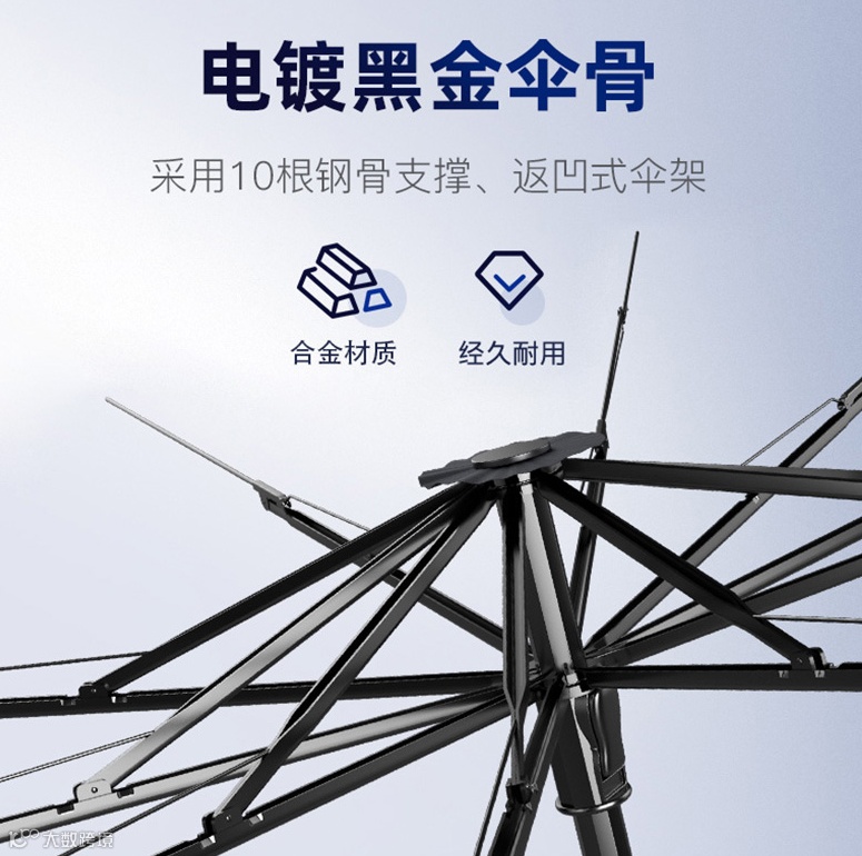 并且采用的是“电镀黑钢骨”和减重型玻纤伞骨