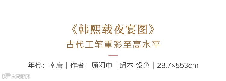 从这幅画中,我们看到了三代名臣韩熙载,放浪形骸,用酣歌醉舞换来一次痛快淋漓的表演;还看到了一位客人,他潜心默记,以工笔传神绘出一场传奇式的夜宴,成就了绘画史上永不褪色的杰作。