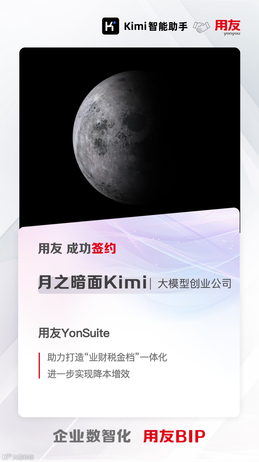在数智化时代,企业数智化转型已成为推动企业持续增长和提升竞争力的关键。近日,大模型公司月之暗面Kimi与用友正式签约,选择与AI时代的商业创新平台——用友YonSuite携手,共同开启企业全面数智化转型的新征程。