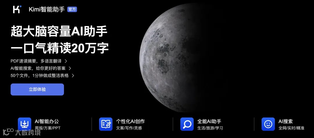 月之暗面Kimi 致力于探索将能源转化为智能的最优解,目标是通过生产能够传播知识、解答疑难、解决复杂问题的智能,赋能每个人成为“超级人类”。2023 年 10 月,月之暗面推出了超大脑容量的AI助手产品——Kimi 智能助手,支持 20 万汉字输入。