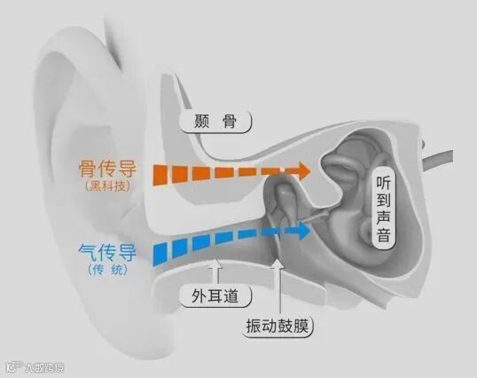 而空气传导则是直接通过震动颅骨,传输声音,无需经过耳膜。
