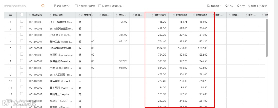 长沙X美妆公司在畅捷通好生意中根据不同客户设置不同的价格等级来维护新老客户,同时在好生意商品档案中维护好每一个商品对应的价格,这样X美妆公司就能通过畅捷通好生意价格等级的优势,给不同的客户展示不同的优惠,避免业务员出现报错价格的情况,不同的详细的客户分层,更好的帮助X美妆公司经营好店铺。