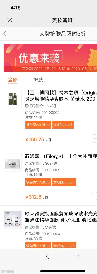 长沙X美妆公司线上店铺上线之际,就通过好生意旺铺开展全场满减优惠券活动,发布了店铺商品满399立减30元优惠券及限时护肤品化妆品8折的优惠券,通过线上分享把优惠券活动第一时间分享给客户,让客户进店能领取优惠券,下单金额越高优惠力度也会越大,通过优惠券的营销活动,很好地吸引了第一波客户,大大地增加了线上店铺的成单率。