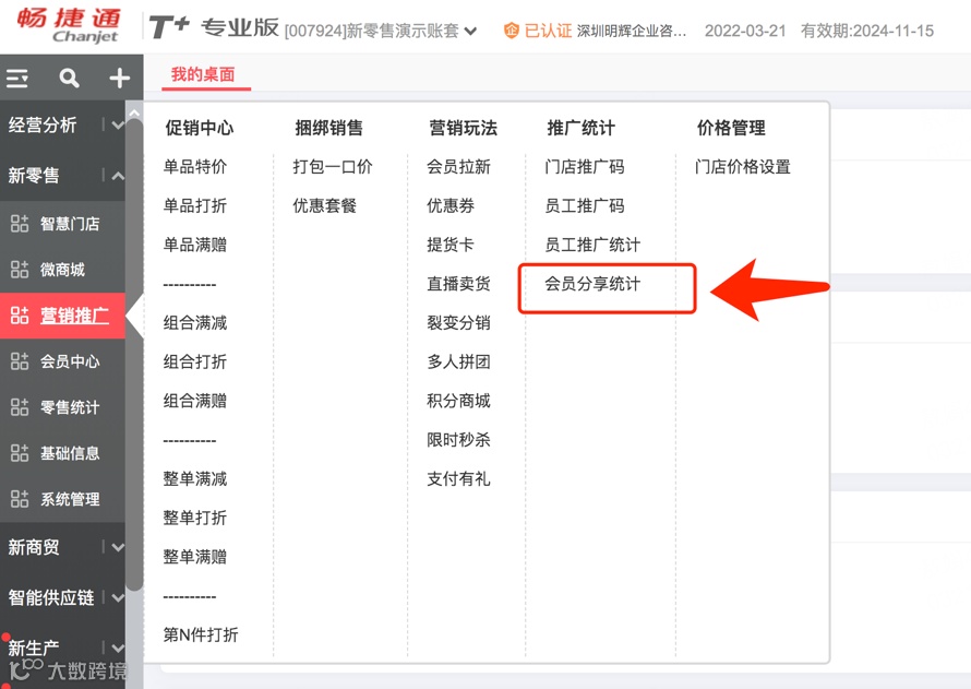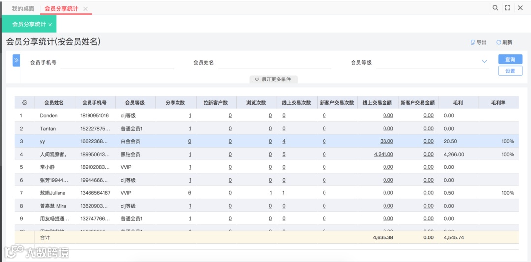 普通会员分享,统计数据在【会员分享统计】处查看,多维度的数据统计,一目了然。