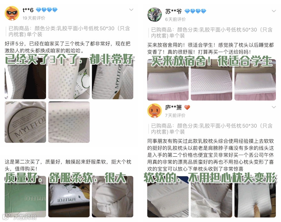 推荐理由:选乳胶枕一定要选真正的天ran乳胶。这枕头使用了真进口乳胶制作,枕在上面脖子很舒适,整个身体都感觉放松了,现在睡了两个星期,越用越上瘾