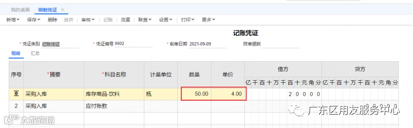 采购入库2次,数量分别是100瓶和50瓶,采购成本价分别5元和4元