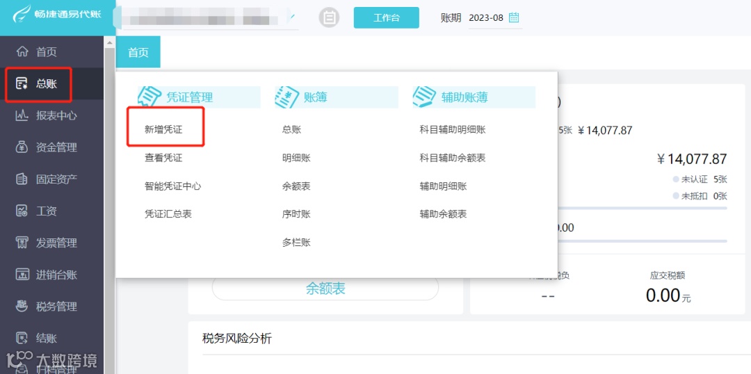 点击【总账】-【新增凭证】进入记账凭证页面