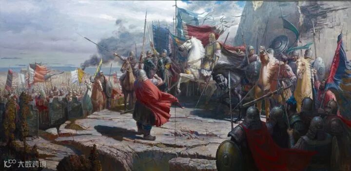 ▲反映汉军反击匈奴入侵成功后,举行封狼居胥典礼的油画(田崴作)