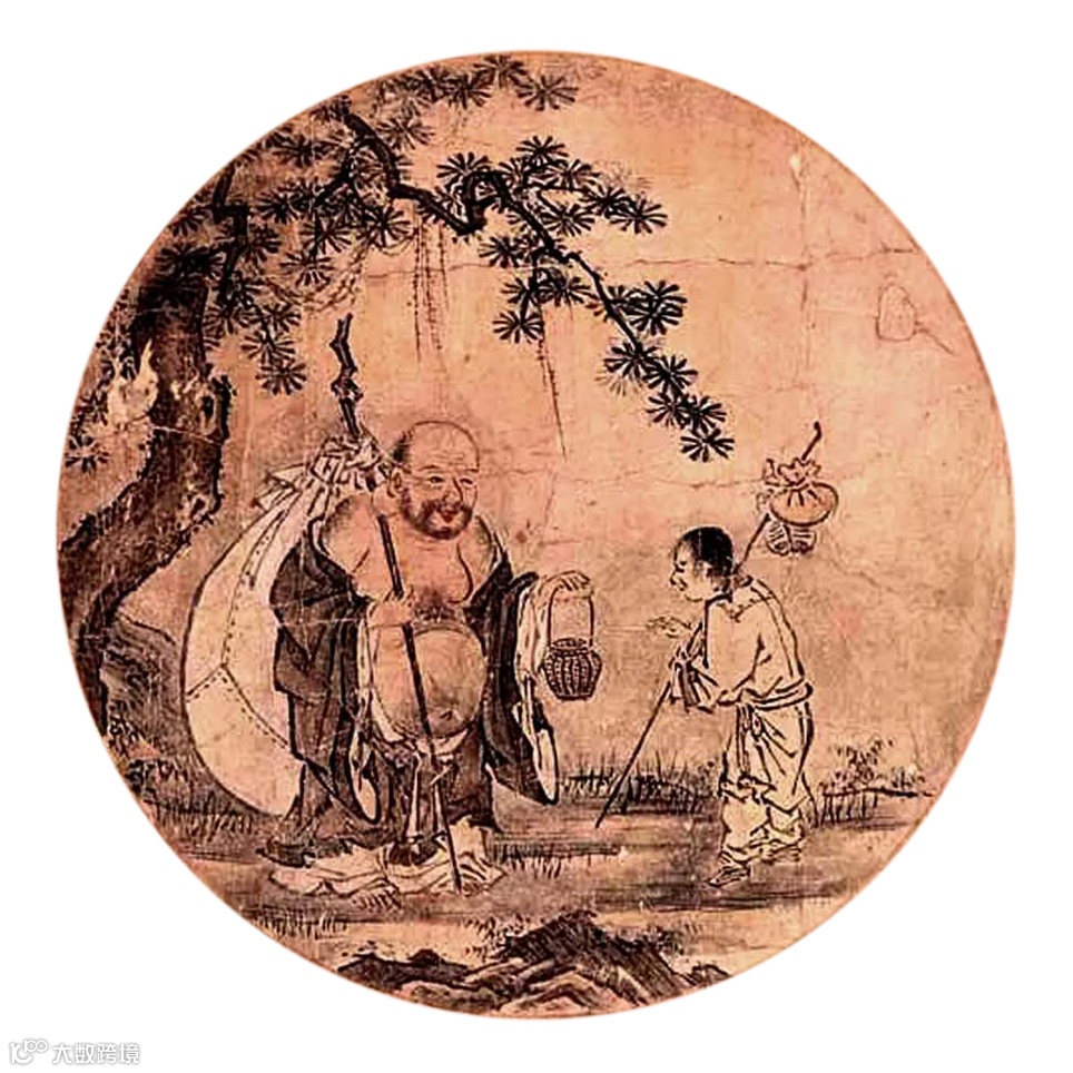 著语:柴门独掩,千圣不知;理自己之风光,负前贤之途辙。提瓢入市,策杖还家;酒肆鱼行,化令成佛!