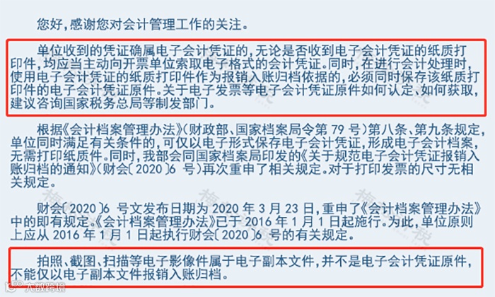 拍照、截图、扫描等电子影像件属于电子副本文件,并不是电子会计凭证原件,不能仅以电子副本文件报销入账归档。