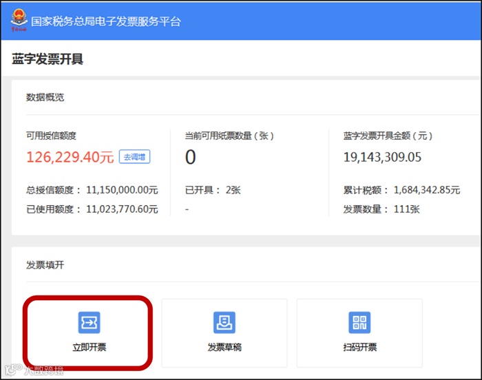 1.进入路径:广东省电子税务局→【我要办税】→【开票业务】→【蓝字发票开具】→【立即开票】。