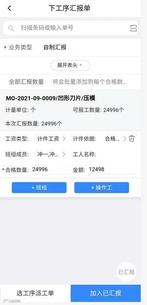 工序汇报时可扫码报工,可单工序报工、可多工序报工,多种不同报工方式可选择,满足不同业务的需求,提高报工的效率,支持移动端工序汇报,可在手机报工,也可在 PDA 报工。