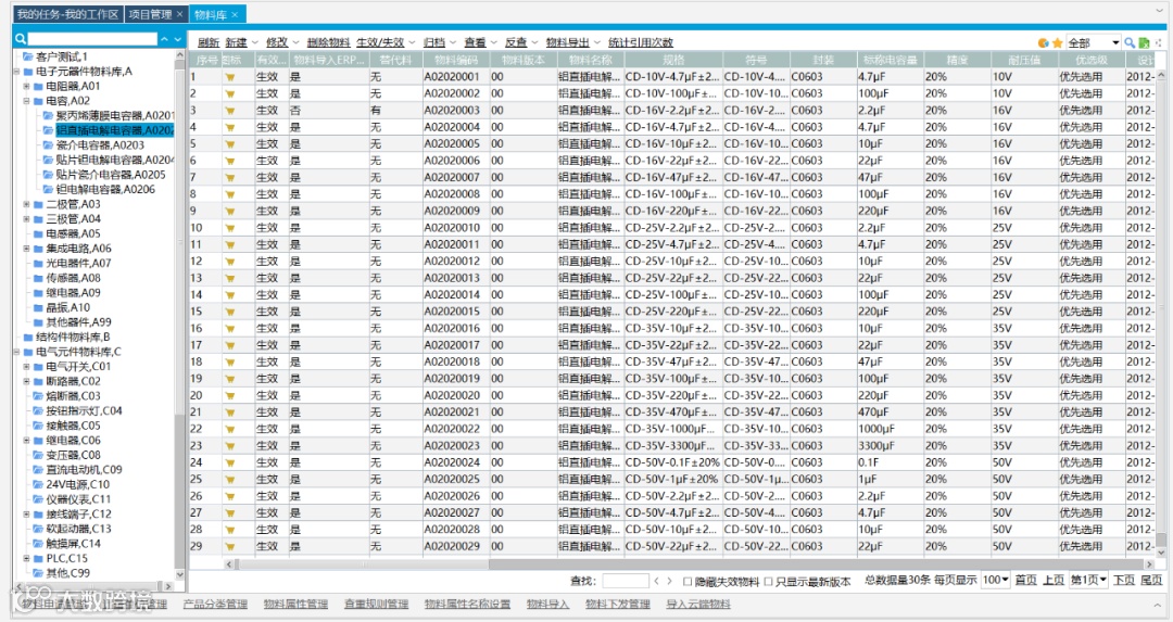PLM根据需要,对所有物料进行分类管理,对零部件实现 ABC分析和分类归档整理。提供与 T+ 一致的统一物料库管理,成为企业准确唯一的基础数据源。并通过与 T+ 之间物料库的互动实现合理的选用控制,能够使企业减少新零件数、降低物料不合理库存。