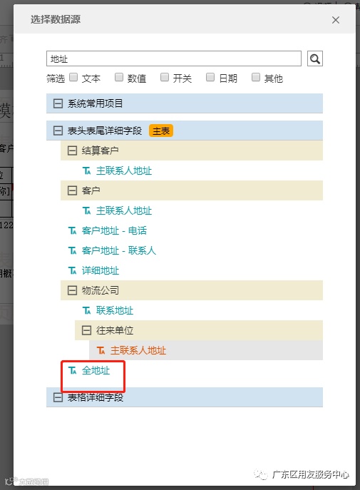 注意,不要选择到其他地址字段,需要选择到【全地址】。