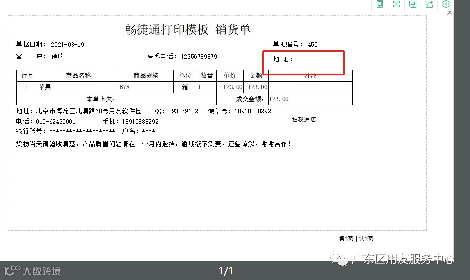 1.好生意打印预览客户地址不出来