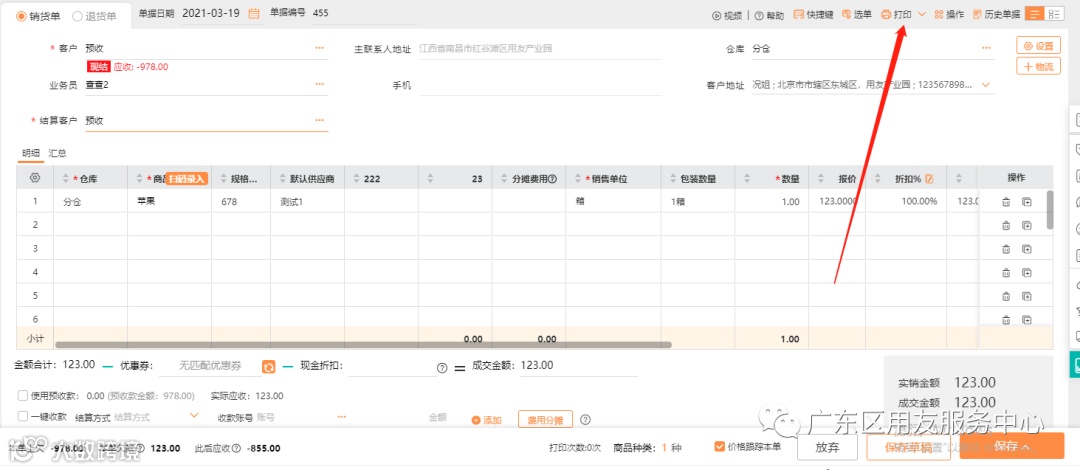打印销货单需要把单据上面客户地址打印出来,一定是需要销货单是保存状态,,否则预览时会变为空。