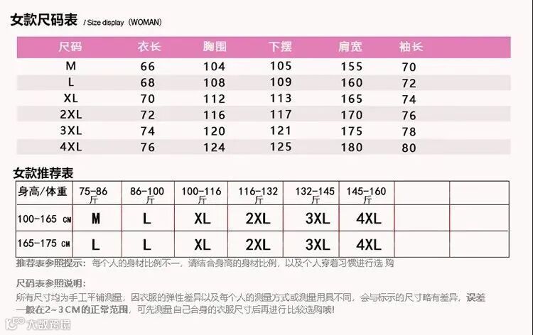 尺码亦是有所不同