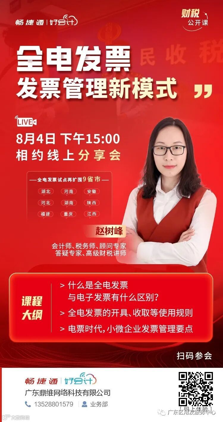08月04日(周四)下午15:00相约线上分享会 高级财税讲师 赵树峰 老师给大家分享《全电发票-发票管理新模式》。