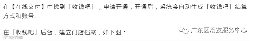 在“零售后台的门店档案--结算方式页签--收钱吧”:指定该门店与收钱吧门店的对应关系。