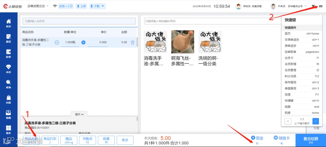 收银员对快捷键不熟,希望在开单界面上能很方便的查看到对应的快捷键,提高收银效率。