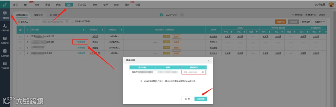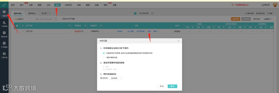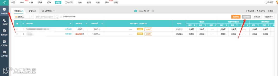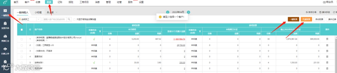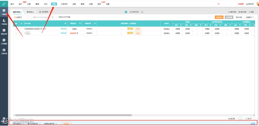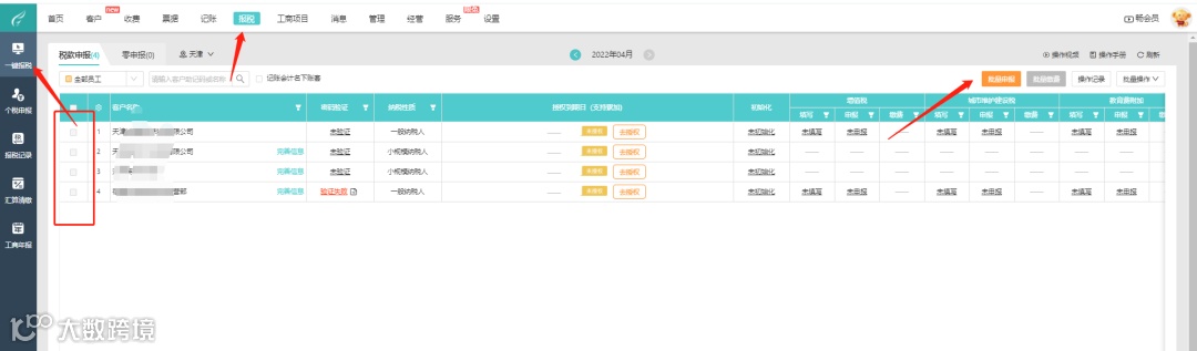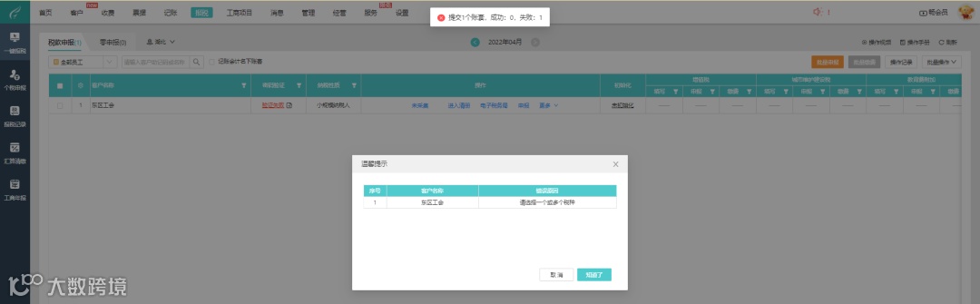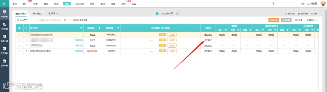 1> 选择已授权且已同步的客户进行申报